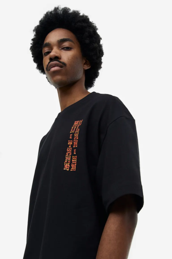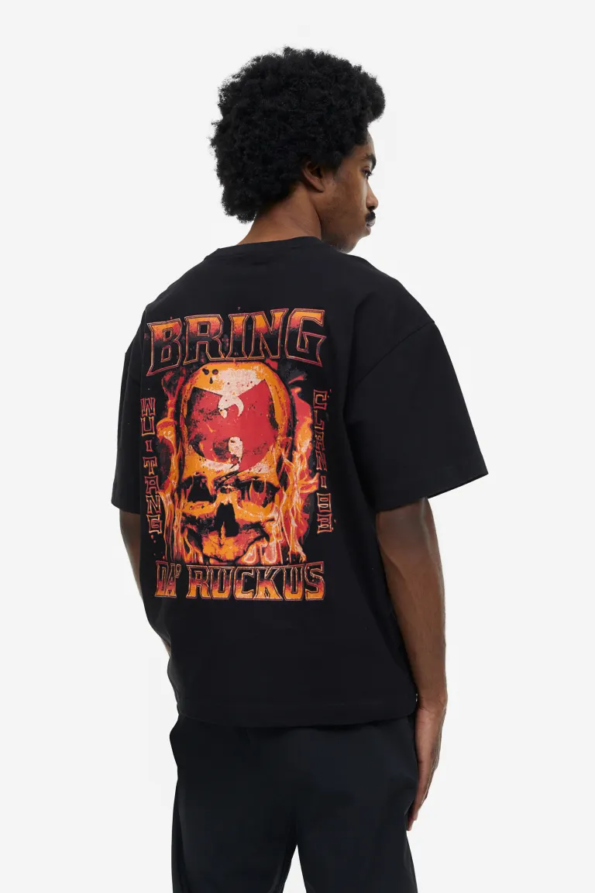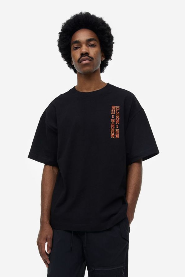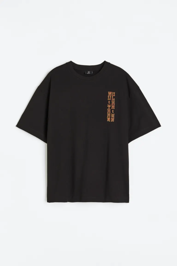 Oversized T-shirt in soft cotton jersey with a print motif. Rib-trimmed neckline, dropped shoulders and a straight-cut hem.